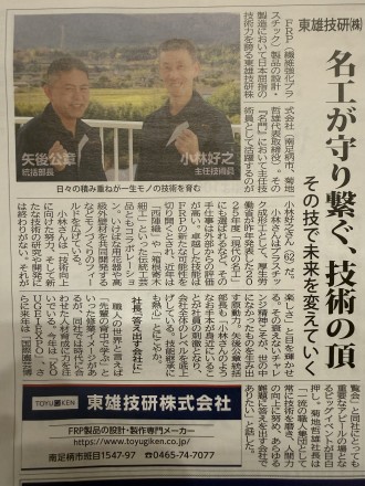 FRP成形技術者として、これからも心技体を鍛えながら皆様のためにものづくりに邁進していきます。